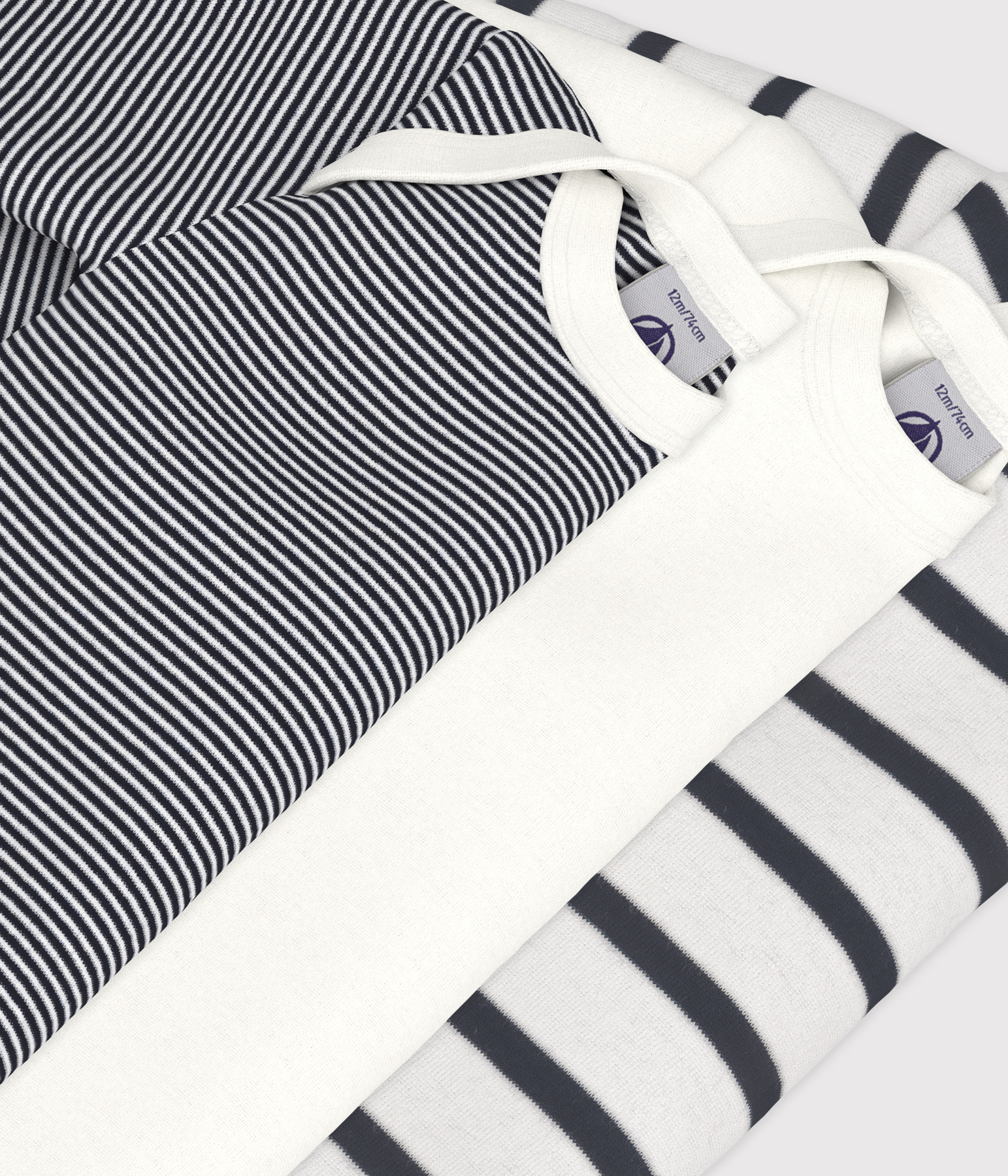 Set of 3 long-sleeved bodysuits in Petit Bateau’s iconic rib knit.